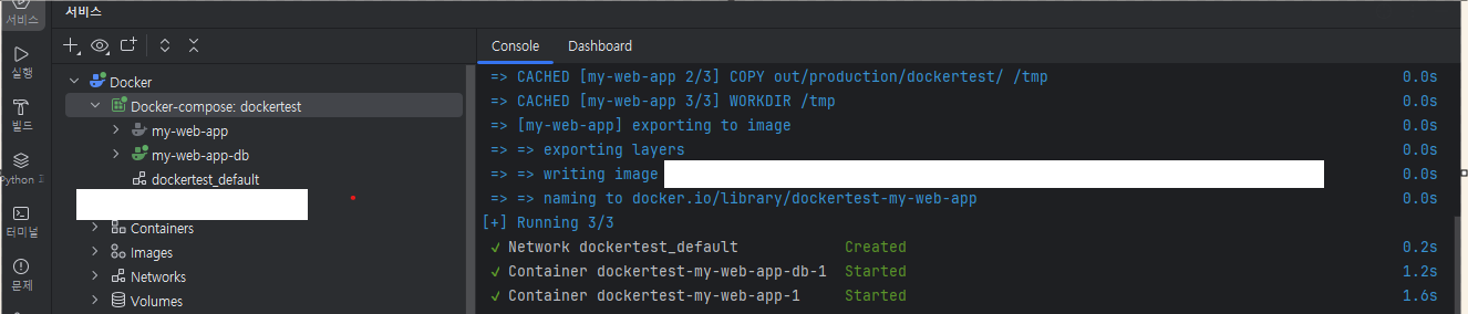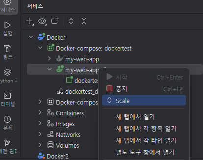 노드를 확장하면 docker compose 파일에 정의한 두 가지 서비스가 표시