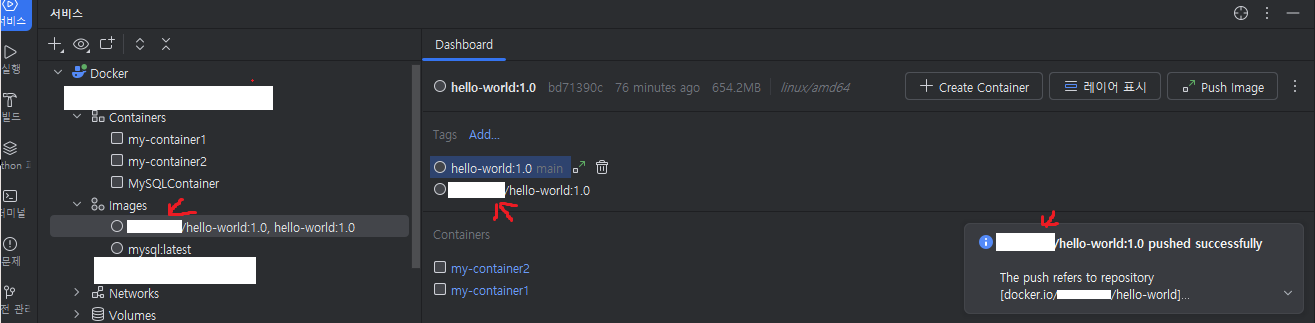이미지태그의 이름을 hello-world:1.0으로 지정,