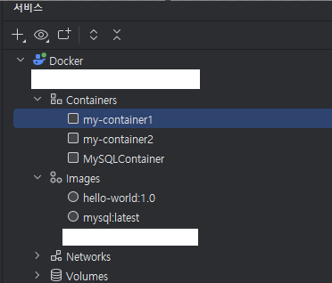 각 서비스 아래에는 해당 서비스에 대해 실행중인 컨테이너가 표시되고
