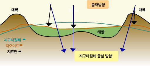 지구의 평균 해수면을 기준으로 한 가상의 표면, 중력의 영향을 고려한 지구의 실제 모양을 나타냄