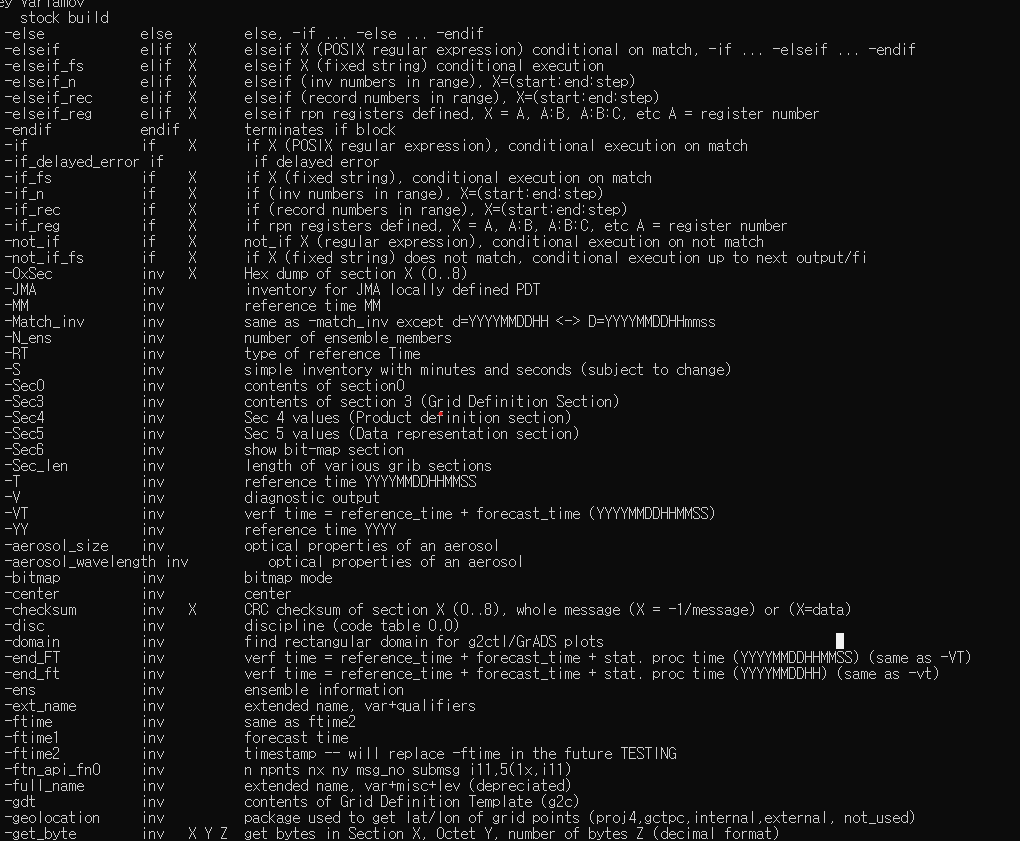 grib2 데이터를 활용하기 위해서 wgrib2 라고 하는 NOAA(미국 해양 대기청)이 제공하는 해독 툴을 사용해야함 다운로드는 아래NOAA에서 지원하는 windows10 용 wgrib2.exe https://ftp.cpc.ncep.noaa.gov/wd51we/wgrib2/Windows10/ Index of /wd51we/wgrib2/Windows10 ftp.cpc.ncep.noaa.gov 최신버전 v3..1.3 다운로드함 (해당 디렉토리의 모든 파일 다운로드)해당 파일들이 있는 곳에서 cmd를 열고 wgirb2 입력 후 엔터. 그러면 이런식으로 뭐가 막 나오는데 그럼 된거임 그 후 https://nomads.ncep.noaa.gov/ NOMADS at ncep.noaa.govClick on the..